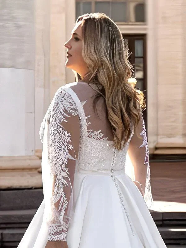 Découvrez notre robe de mariée grande taille, une robe Conçue pour exalter toutes les silhouettes avec finesse et confort. Inspirée des plus belles robes de mariée, elle réunie des textiles vaporeuses comme le satin à de délicats broderies, pour un rendu à la fois romanesque et glamour. Harmonieuse pour un mariage civil ou une célébration, cette création de mariée vous garantie un drapé impeccable. Une belle robe pour dire oui en toute confiance et finesse. Pour couronner votre robe, penchez pour un voile long, un peigne, un serre-tête, ainsi qu’une paire de bottines. des boucles d’oreilles ou une cape souple ajouteront une touche poétique parfaite pour votre mariage. Nous proposons tout ce dont les futures mariées aux silhouette voluptueuse rêvent en matière de robes de mariée grandes tailles.